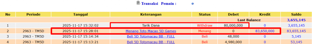 Posted on November 17, 2025 By Operator Protogel No Comments on Bukti Bayar Kemenangan Pada Permainan Toto Macao 5D