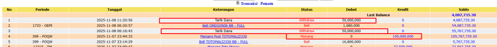 Posted on November 8, 2025 By Operator Protogel No Comments on Bukti Bayar Kemenangan Pada Permainan TOTOMALI2330